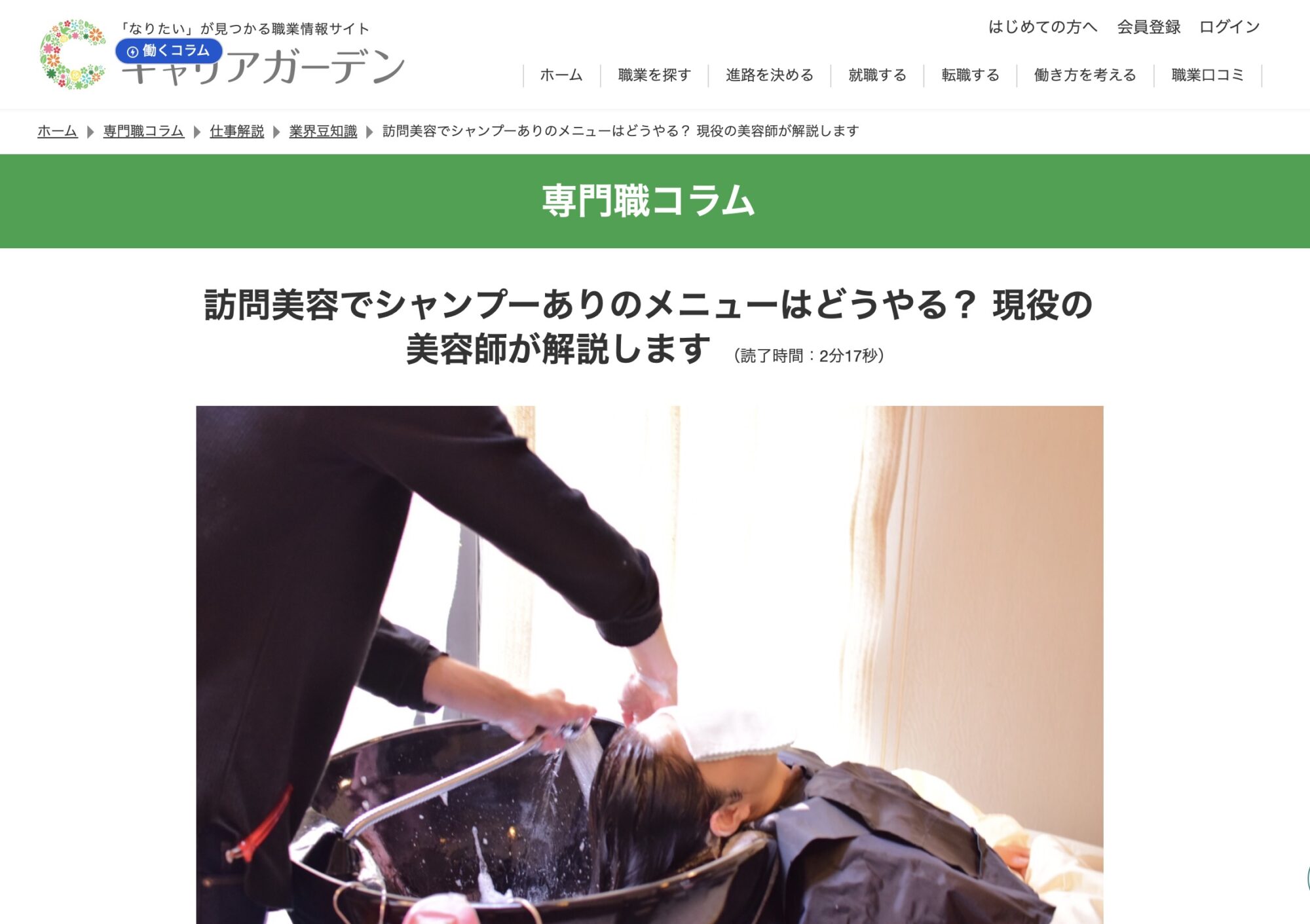 職業情報サイトのキャリアガーデンにて、訪問美容師としての専門職コラムを執筆しました。